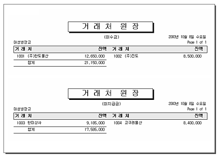 ¹Ì¼ö±Ý, ¹ÌÁö±Þ±Ý, ±âŸ °Å·¡Ã³ ÀÖ´Â °èÁ¤°ú¸ñÀÇ °Å·¡Ã³º° Àܾ×À» Ãâ·ÂÇÕ´Ï´Ù. |